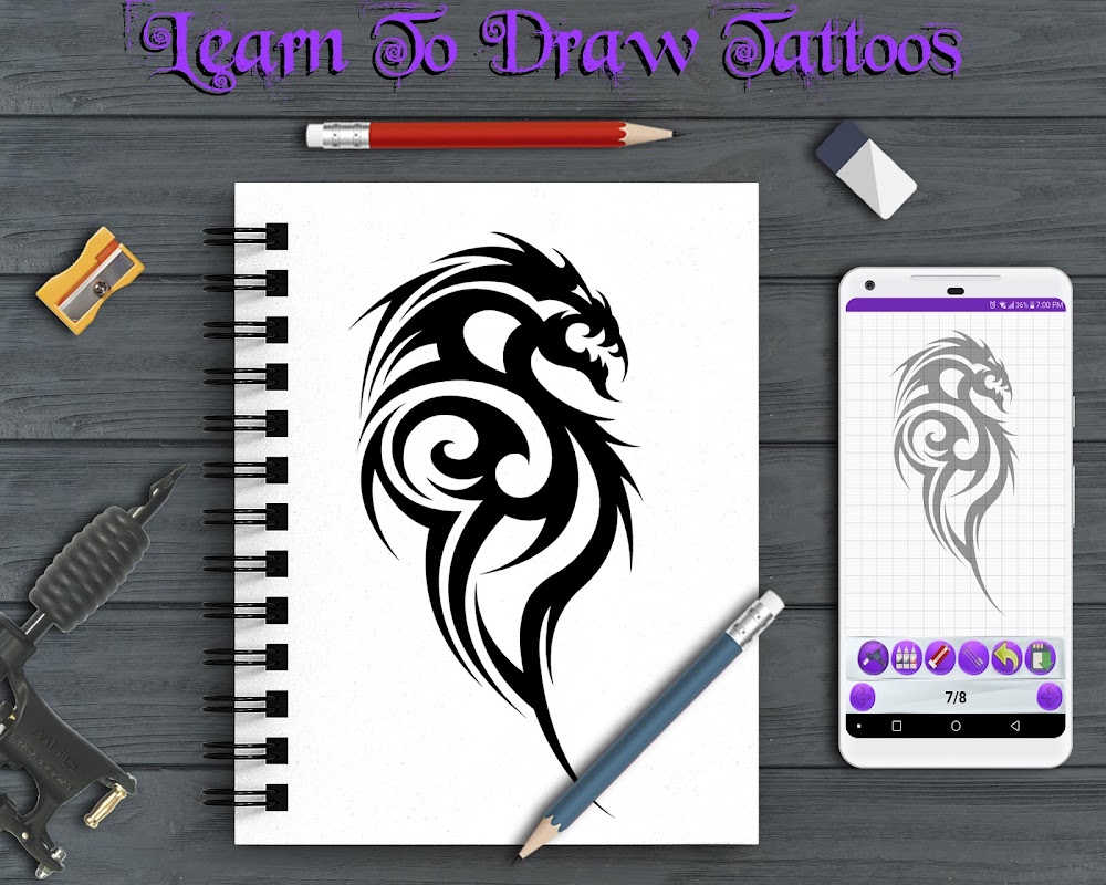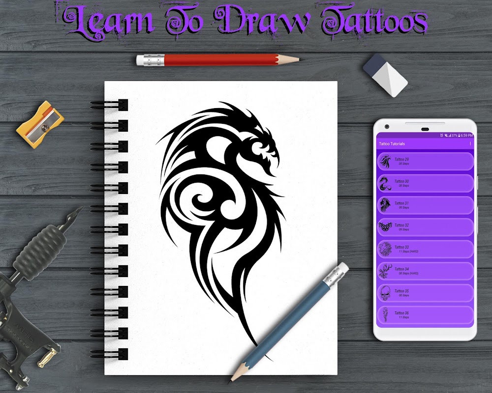 Versuchen zu lernen, wie man Tätowierungen Schritt für Schritt zeichnet? Diese App ist was Sie brauchen.