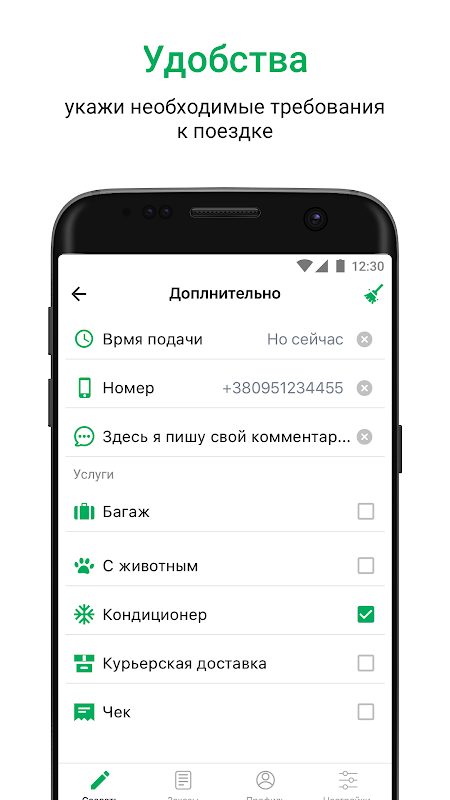 • добавление стоимости к заказу - для более быстрого поиска машины, вы можете немного увеличить стоимость поездки
