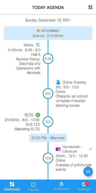 Today agenda and next 7-day agenda are specially designed with gentle reminders so teachers can quickly pick up ongoing or upcoming classes to ensure you never miss any classes.
