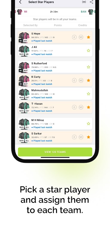 ⭐ Auswahl der Starspieler: Stellen Sie sicher, dass in allen Ihren Teams Schlüsselspieler auftauchen.