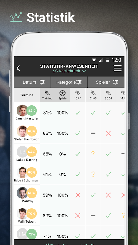 Trainer können alle Daten und Informationen zu ihren Spielern einsehen und verwalten. Sie haben einen direkten Überblick über die Verfügbarkeit der Spieler, übernommene Aufgaben auch Anwesenheits- und die Leistungsstatistiken jedes einzelnen Teammitglieds sieht der Trainer auf einen Blick.