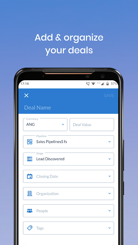 -Find deals in all stages and pipelines -Assign activities to yourself and colleagues -Add and manage deals instantly