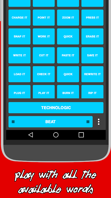 Technologic soundboard. Play with the beat of the songs and all the available words from the song.