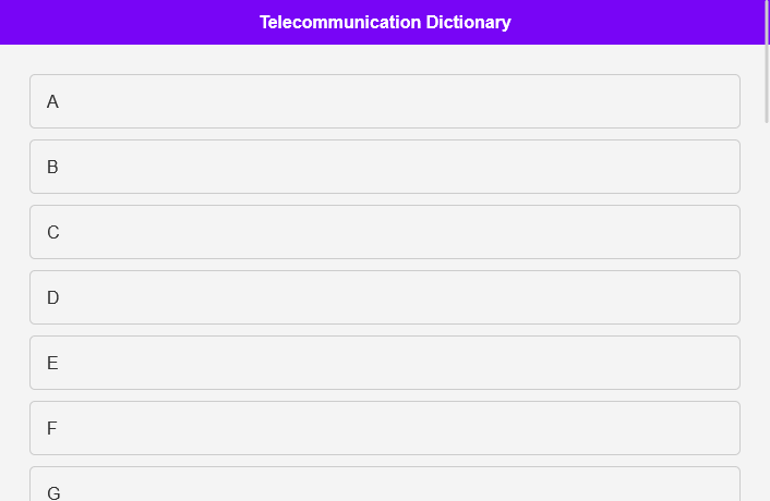 Benutzerfreundliche Benutzeroberfläche: Die Telekommunikationswörterbuch-App wurde speziell für den Benutzer entwickelt und bietet eine elegante und intuitive Benutzeroberfläche. Die Navigation durch die Telekommunikationsbegriffe ist einfach und effizient und eignet sich daher für Benutzer jeden Alters und jeder Herkunft.