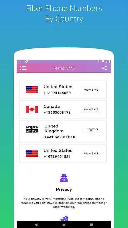 Temporäre SMS: Verwenden Sie diese Anwendung, um Ihr Konto zu verifizieren, ohne Ihre eigene Telefonnummer verwenden zu müssen. Temporär [Temp SMS] bedeutet, dass die Nummer nur wenige Tage, Wochen oder Monate online ist, aber nicht dauerhaft online.
