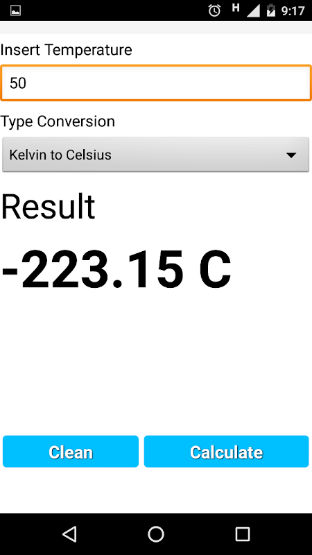 Anwendung für die Berechnung und Temperaturkonvertierung