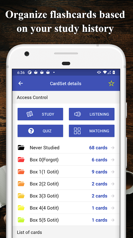 • Überprüfungszeitplan, um Ihnen zu helfen, Karteikarten zu überprüfen, bevor sie ablaufen.