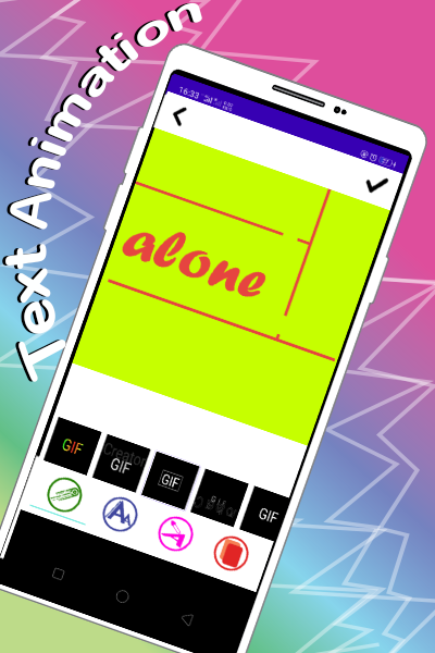 Textanimation App, mit der Sie farbigen Hintergrund mit Textanimation überlagern können. Sie können die Hintergrundfarbe einfach mit dem Farbrad ändern, und Sie können sie mit Ihren eigenen Bildern oder Bildern ändern, den Export des Videos als GIF oder MP4.