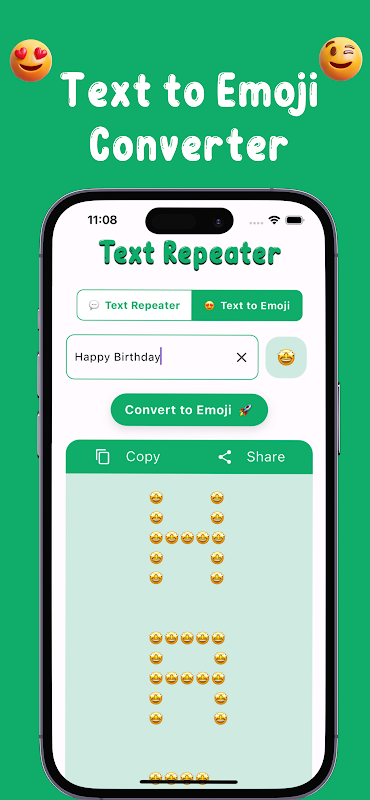 Benutzerdefinierter Emoji-Repeater: Entdecken Sie unsere große Auswahl an Emojis und Symbolen, um Ihren Nachrichten eine einzigartige Note zu verleihen. Von Herzsymbolen bis hin zu niedlichen Emoji-Texten bietet unsere App endlose Möglichkeiten, Ihre Kommunikation zu verbessern.