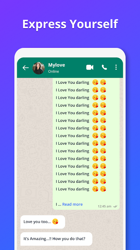 Mit dieser innovativen Textwiederholungs-App können Sie jeden Text mühelos und in nur wenigen Sekunden mehrmals wiederholen. Egal, ob Sie den Text kopieren oder duplizieren, einen Absatz replizieren oder eine bestimmte Phrase kopieren müssen, mit der Textgenerator- und Repeater-Schriftart-App sind Sie an der richtigen Adresse.