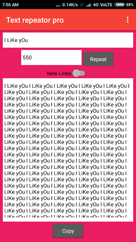 Many times we want to send repeated text messages to our friends on WhatsApp or facebook so we found that we must copy/paste the same text multiple times which is a boring process! but with our Text Repeater you just have to write the text you want and also you can include emoji, then choose the number of repetition you want and click Load then booom your repeated text is ready, so you can copy or share it with your friends easily on any social network and chat:watssap, Instagram, snapchat, also at comments.