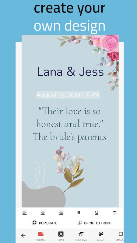 Textgram is an app that allows you to write text on photos, or edit captions (captions editor), or create a new photo with your own design. You can start with an empty canvas, insert pictures, add text and filters to create your own unique artistic design. Then you can either save your creation to edit it later on, or share it with your friends over Whatsapp, Messenger, Twitter or any social media or instant messaging application.