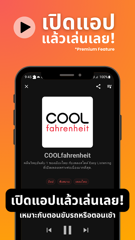 • Hören Sie sowohl UKW- als auch Online-Sender wie Cool Fahrenheit Green Wave, EFM, Luk Thung Maha Nakhon und Sawp. FM 91, FM 100,5 und viele mehr.