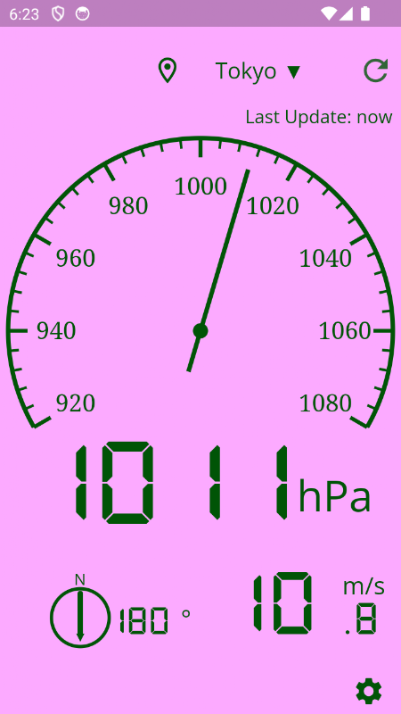 Dies ist eine App, mit der Sie sofort den Außenluftdruck, die Windrichtung und die Windgeschwindigkeit überprüfen können.
