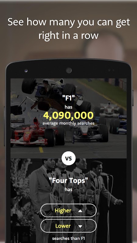 It’s easy to play, simply decide which search term has been searched for the most by selecting higher or lower. The objective is to get the most right in a row.