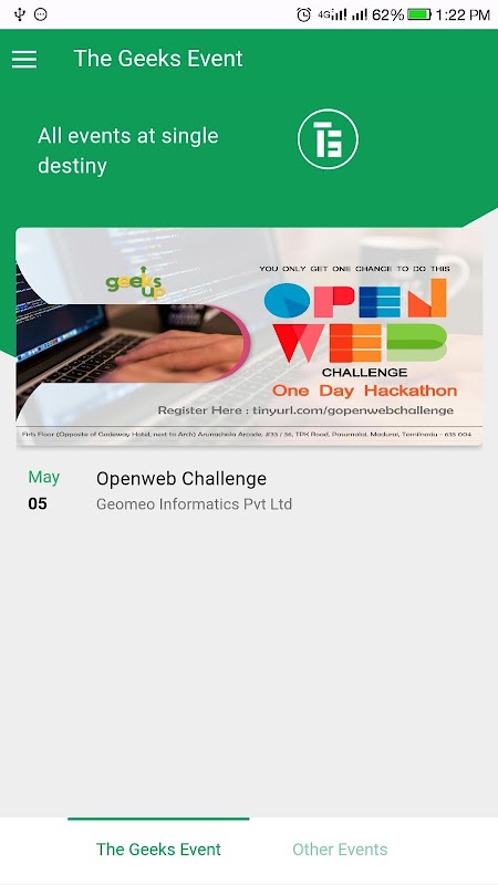 Geeksevent is a unique developer and technology platform, which has combined experience in mobile, web and technology developments. We partner with top companies and start-ups to train and identify best talents across the country.