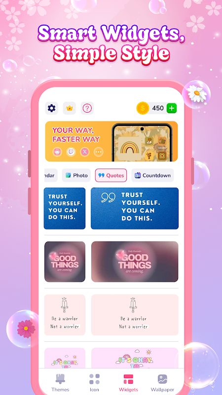 🎯 Lade jetzt Themes, Wallpapers & Widgets herunter und bring deine Android-Personalisierung aufs nächste Level – mit wunderschönen 4K Hintergrundbildern, funktionalen Widgets und einzigartigen Icon-Stilen.
