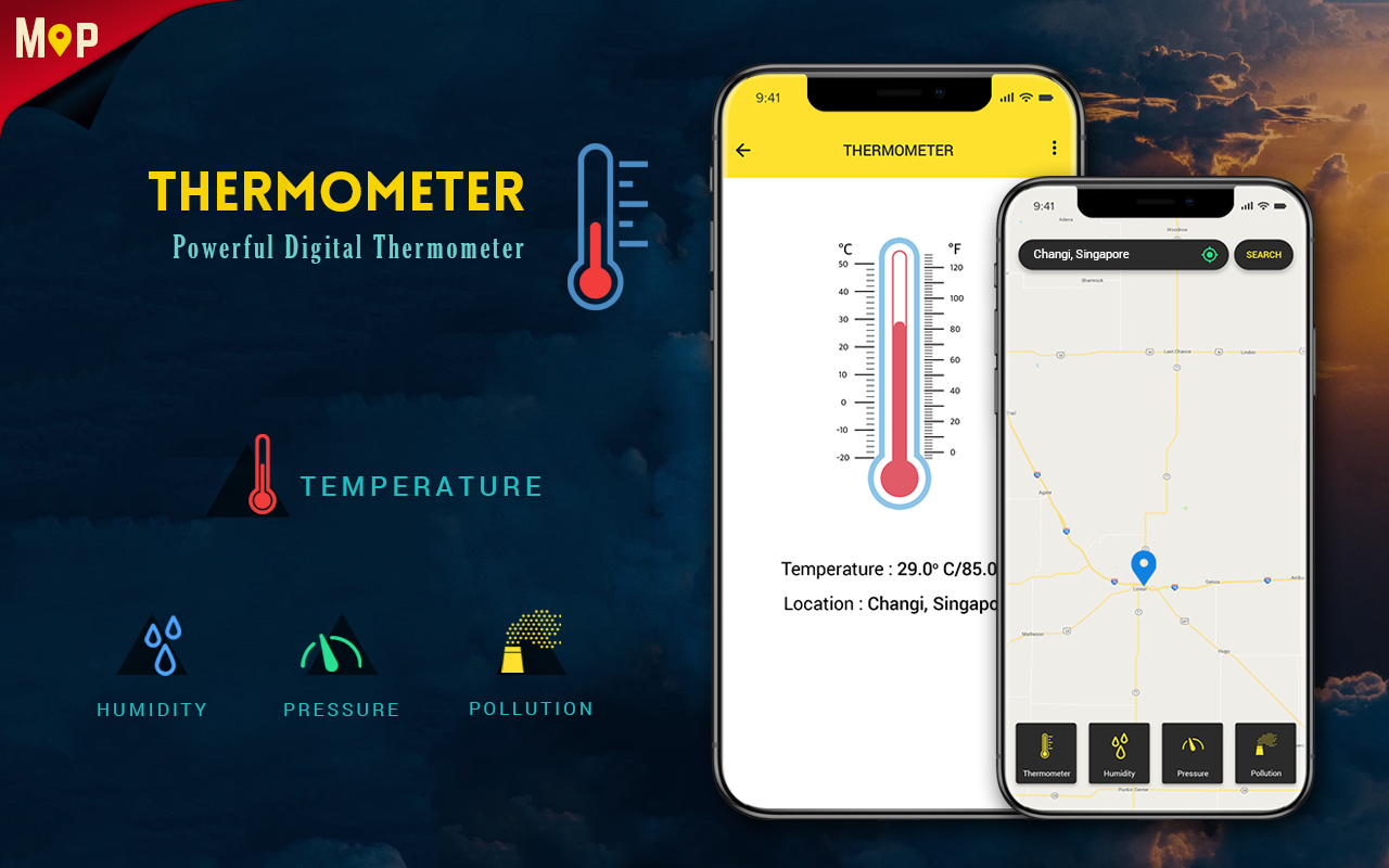 Messen Sie schnell und genau Temperatur- und Luftverschmutzungsergebnisse mit der brandneuen Thermometer App oder Thermometer ++ kostenlos !!!