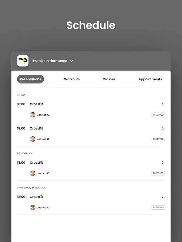 Kursreservierungen und Kontoverwaltung für Mitglieder von Thunder Performance