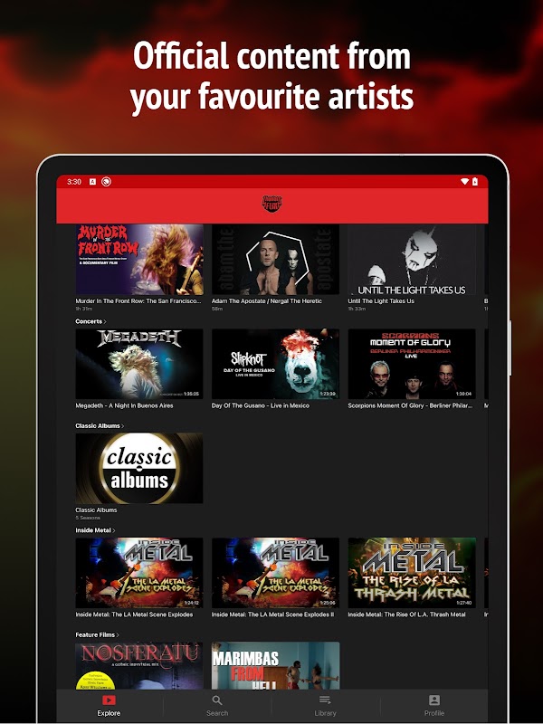 Machen Sie sich bereit, mit der weltweit ersten Streaming-Video-on-Demand-Plattform zu rocken, die ganz dem Heavy Metal gewidmet ist! Tauchen Sie ein in das Beste des Metal aus der ganzen Welt mit Zugriff auf Hunderte von Musikvideos, Live-Auftritten, Dokumentationen und Spielfilmen.