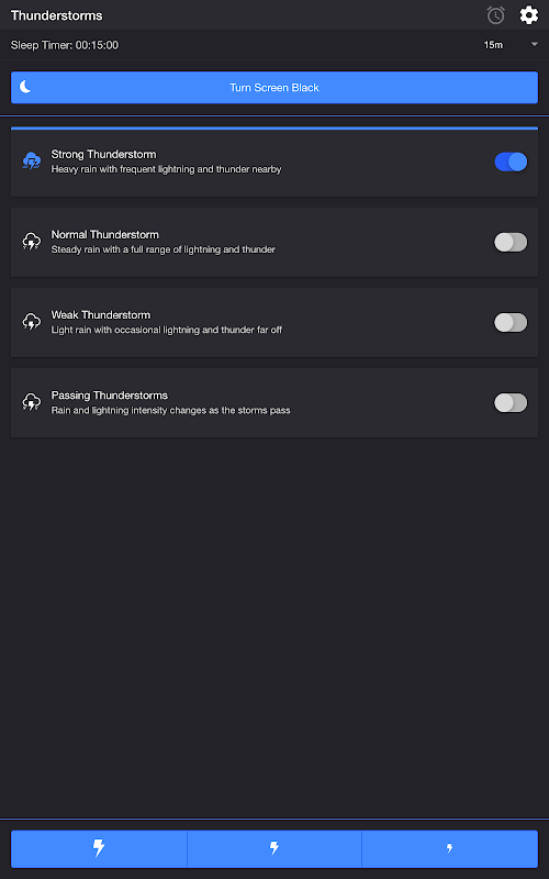• Blitze auf Knopfdruck – Erzeugen Sie ein Gewitter und steuern Sie es manuell über die Blitz-Buttons am unteren Bildschirmrand.