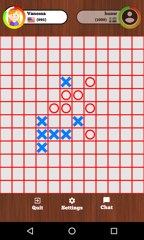 Just tap the square you want to play in. Be the first to get five in a row (5 in a straight line) to win! You can get five in a line both horizontally, vertically and diagonally to win. This is a game of tactics and strategy, so why not challenge a friend?
