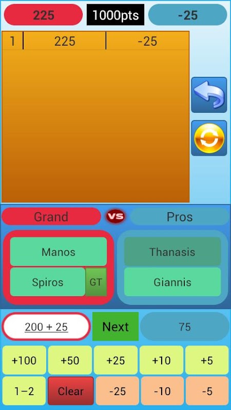 3) auf jedes der Teams runde Punkte klicken, um die Punkte für diese Runde hinzuzufügen.