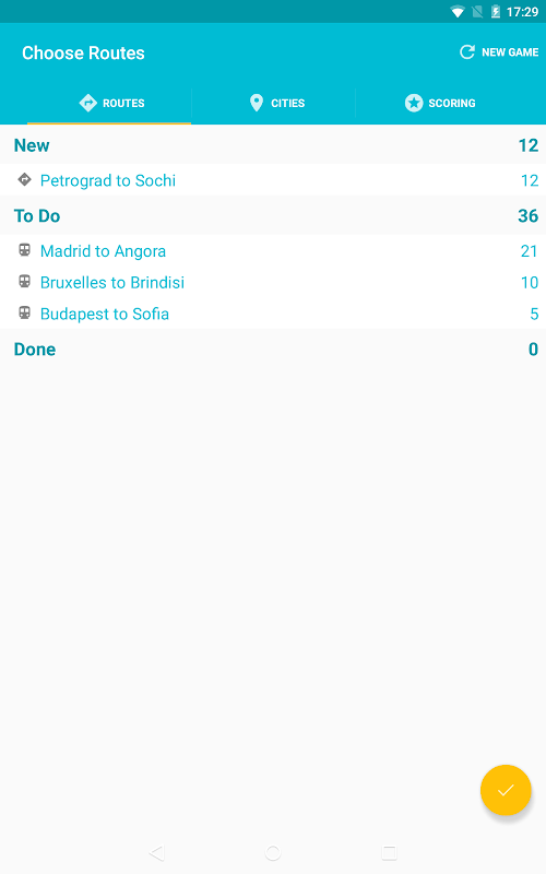- Mark routes and cities complete or ignored as you play.