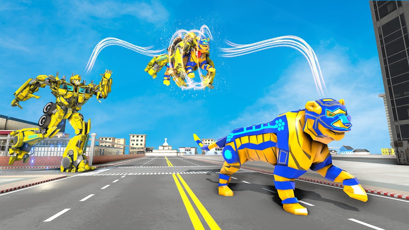 In der Ära der 3D-Welt der fliegenden Roboterspiele zeigen Ihnen diese weißen Tiger-Roboterspiele die 3D-Welt der Kampfauto-Roboterspiele mit Roboterhelden, die einen Geschwindigkeitsroboter mit Waffen haben. Die US-Polizei-Roboterauto-Transformation und Monster-Roboterhubschrauber geben Ihnen die Möglichkeit, Roboterspiele zu transformieren, um als Top-Cop mit Kriegerroboter gegen Jet-Roboter zu kämpfen. Futuristische Roboterkriegsspiele sind hier, also laden Sie dieses Spiel der Woche mit den besten Actionspielen oder Transformationsspielen jetzt herunter und genießen Sie das kostenlose Spiel Lion Robot Wars. Robot War Free Game ist die Zukunft der Polizeiverfolgung durch die Transformation von Robotern.