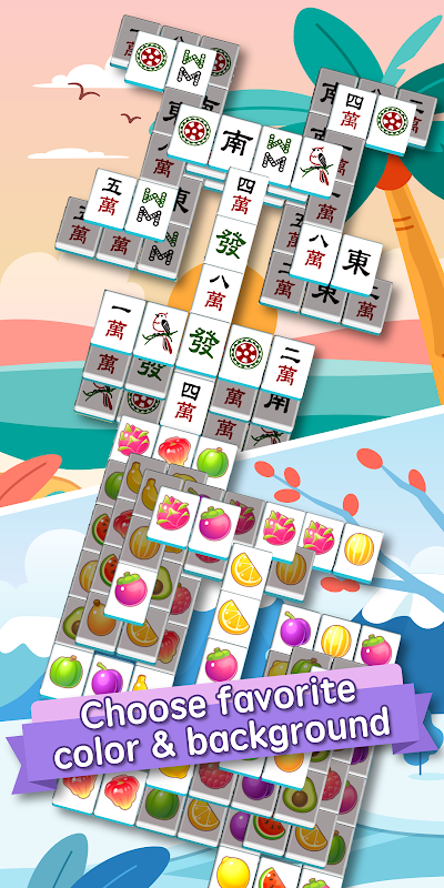 Wähle Hintergründe aus vier Jahreszeiten und Mahjong-, Obst-, japanische und Essensmuster. Schalte so viele Level frei, wie du möchtest.