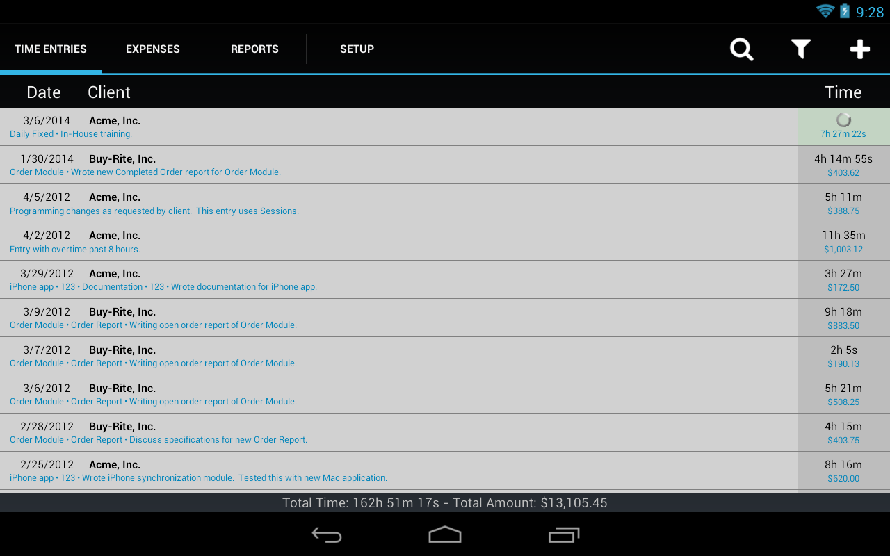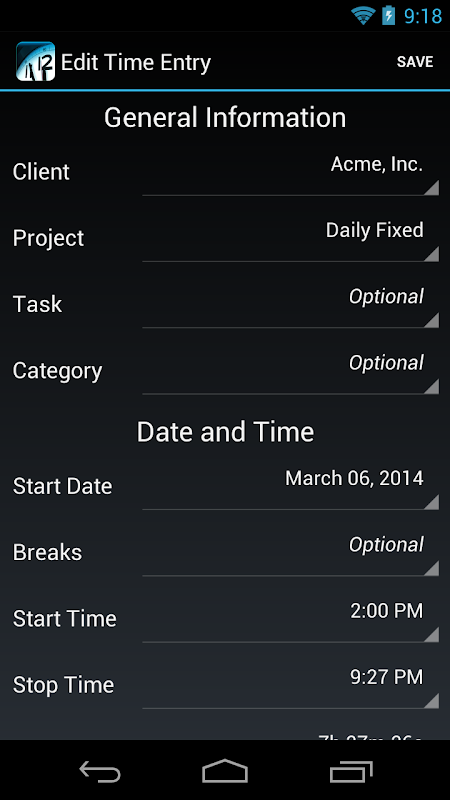 Wir haben alles so nahtlos wie möglich gemacht, um Ihre Zeit und Ausgaben zu verfolgen, wie Sie es von einer erstklassigen Android-Anwendung erwarten würden. Besuchen Sie uns im Internet, um die Dokumentation herunterzuladen, oder besuchen Sie unsere Foren.