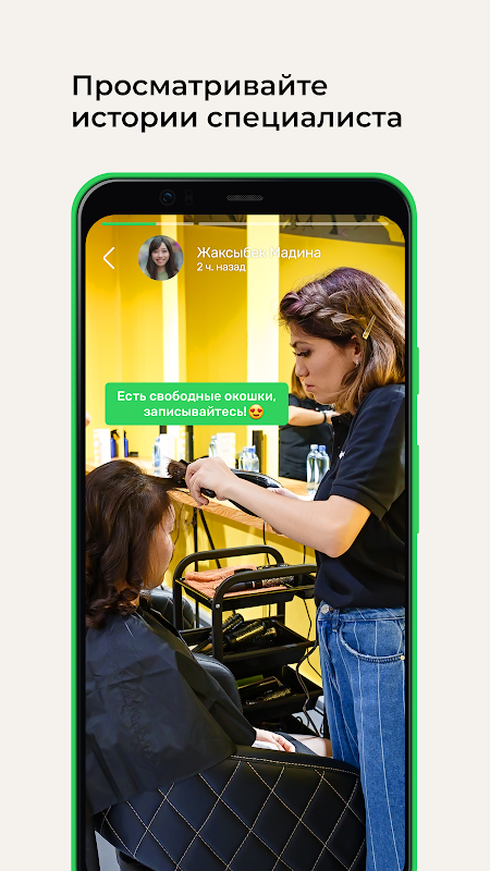 Перед каждым посещением Вы увидите имя, рейтинг, бизнес-детали, галерею, последние истории, отзывы и фотографию назначенного специалиста. Вы также сможете связаться с ним/ней, если Вам нужно.