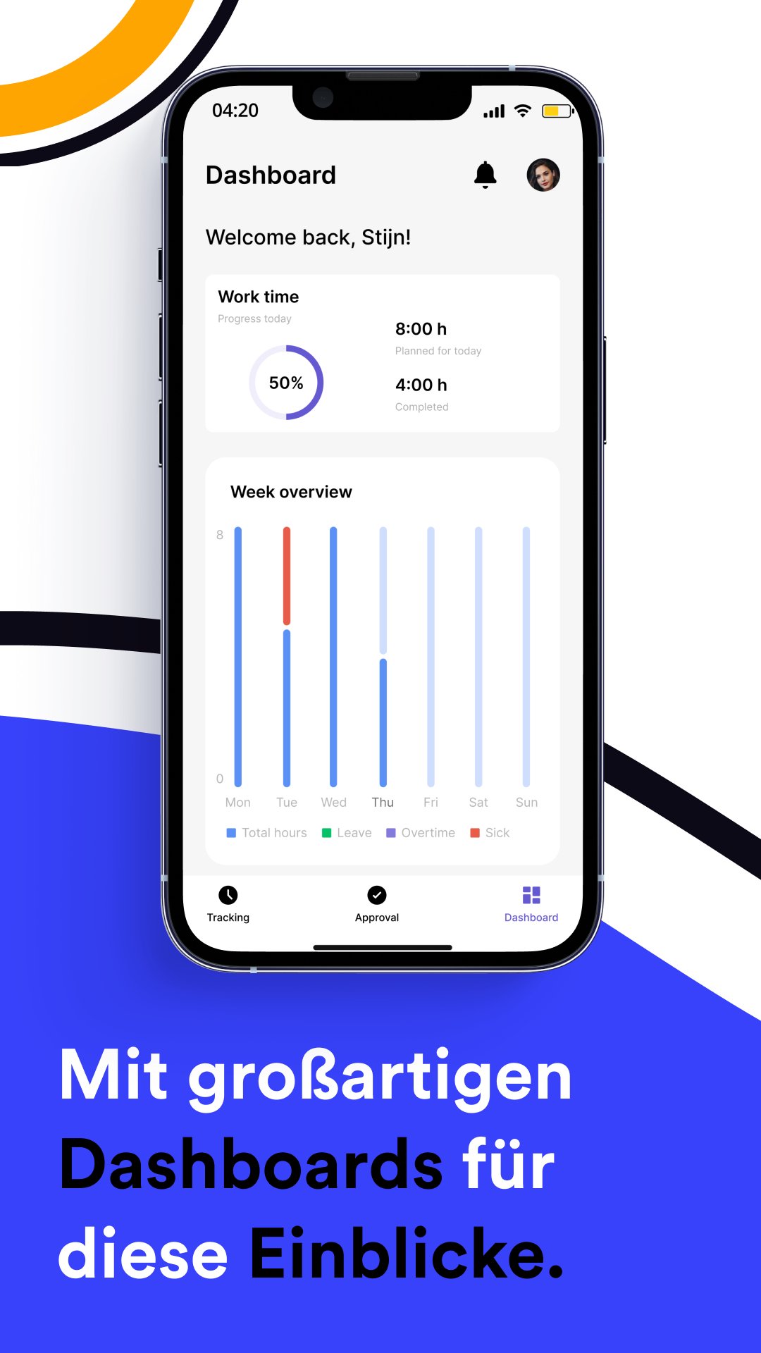 - Dashboards: Voller Überblick zu Ihren Arbeitsstunden, Urlaubstagen, Überstunden, Krankmeldungen und mehr.