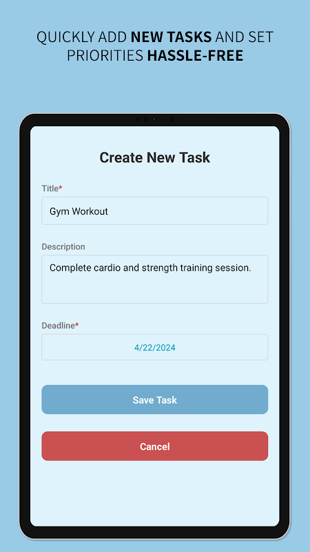 Fügen Sie ganz einfach Aufgaben zu Ihrer Liste hinzu und geben Sie Details wie Fälligkeitstermine, Prioritäten und Kategorien an, um Ihren Arbeitsablauf zu organisieren. Egal, ob Sie Arbeitsprojekte, akademische Aufgaben oder persönliche Besorgungen in Angriff nehmen, TimeCraft hilft Ihnen, konzentriert und auf dem richtigen Weg zu bleiben.