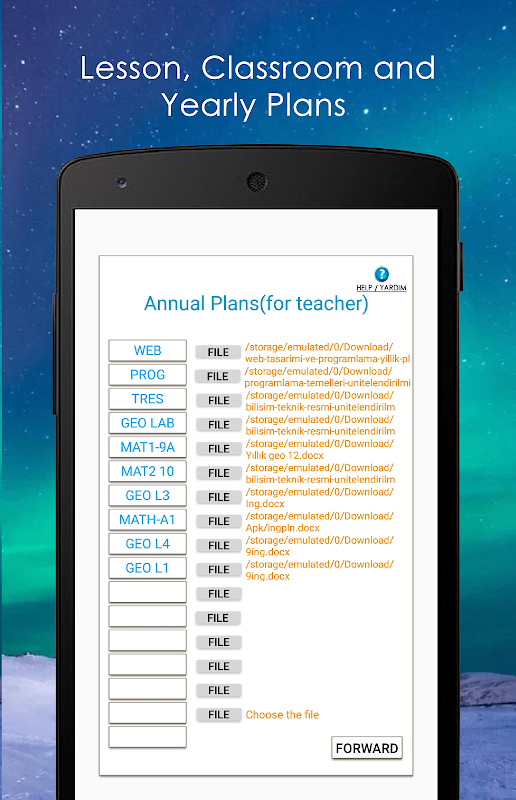 Als Lehrer können Sie Ihren Jahresplan hochladen. Wenn der Kurs beginnt, können Sie das Unterrichtsthema der Woche anzeigen, in der Sie sich gerade befinden. Die Anwendung findet das Thema der aktuellen Lektion / Aufgabe für Sie und schreibt es auf den Bildschirm.