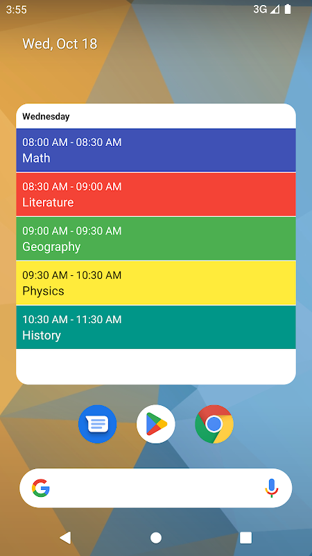 Chrono Table ist eine einfach zu bedienende, intuitive Anwendung zur Verwaltung Ihrer Schul-, Geschäfts-, Arbeits- oder anderer wöchentlicher Aktivitäten. Die Anwendung wurde entwickelt, um benutzerfreundlich zu sein und ist nicht mit vielen auszufüllenden Feldern überladen. Sie müssen einfach nur den Ereignisnamen eingeben, einen Zeitraum auswählen und speichern. Danach können Sie einfach nach links und rechts wischen, um zu sehen, was in Ihrem Zeitplan ansteht. Sie können die App als Stundenplan verwenden und sie ist der perfekte Begleiter für Schule, Hochschule oder Universität. Keine andere Stundenplan-App war je so einfach zu bedienen. Diese Anwendung erfordert kein Erstellen eines Kontos oder eine Internetverbindung, sie funktioniert komplett offline.