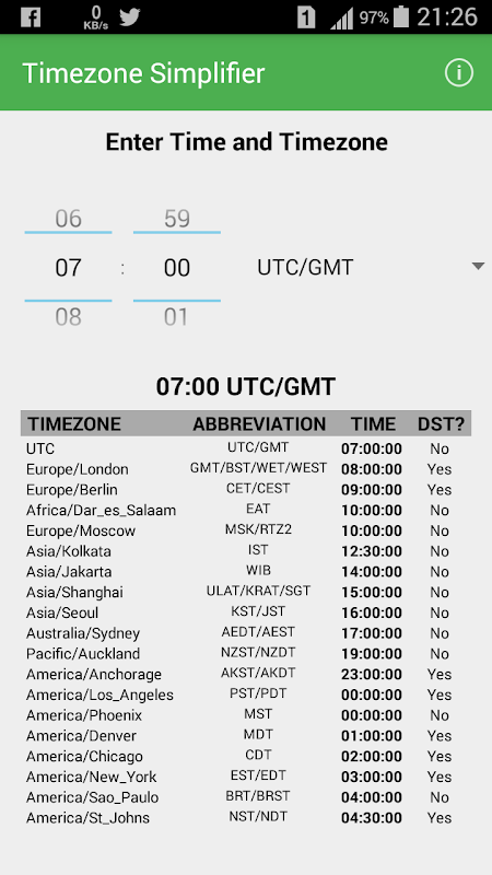 Dieses kleine Tool hilft Ihnen jederzeit zu einem anderen Zeitzone konvertieren, ohne Hektik. Es unterstützt derzeit die folgenden Zeitzonen: