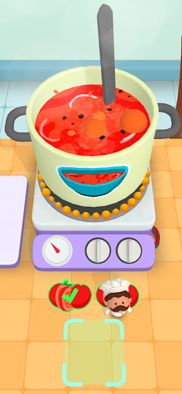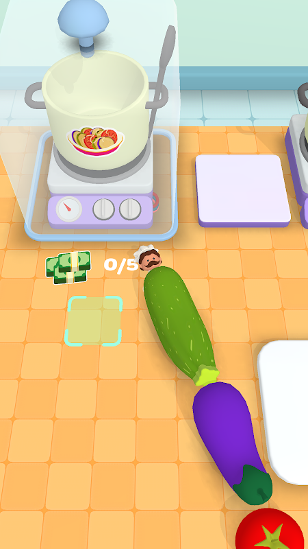 Kochen und servieren Sie Ihren Kunden Gerichte, die zehnmal so groß sind wie Sie, und sammeln Sie Geld. Verwenden Sie das Geld, um Köche einzustellen und zu verbessern. Der Tisch ist deine Welt, die es zu erobern gilt!