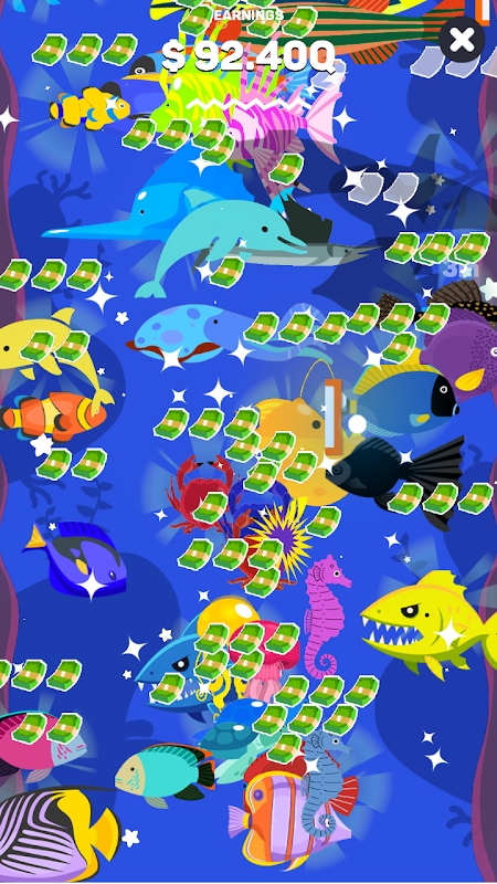 Tiny Fishing 2 ist von Anfang an einfach zu spielen. Wirf deine Angel aus, klicke mit der Maus und wische von links nach rechts, um den Fisch zu haken. Jeder Fisch hat je nach Seltenheit einen Geldwert.