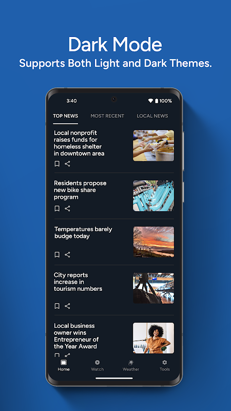 • Tippen Sie auf „Top-Nachrichten“, um die wichtigsten Nachrichten des Tages zu lesen, die von unseren lokalen Nachrichtenteams zusammengestellt wurden.
