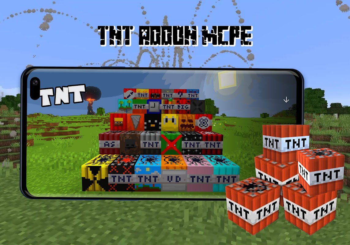 Mehr als 50 Arten von TNT warten auf Sie, um ein außergewöhnliches Experiment in der Welt von Minecraft - Pocket Edition zu machen. Jedes TNT hat unterschiedlichen Angriffsschaden von endloser Dauer.