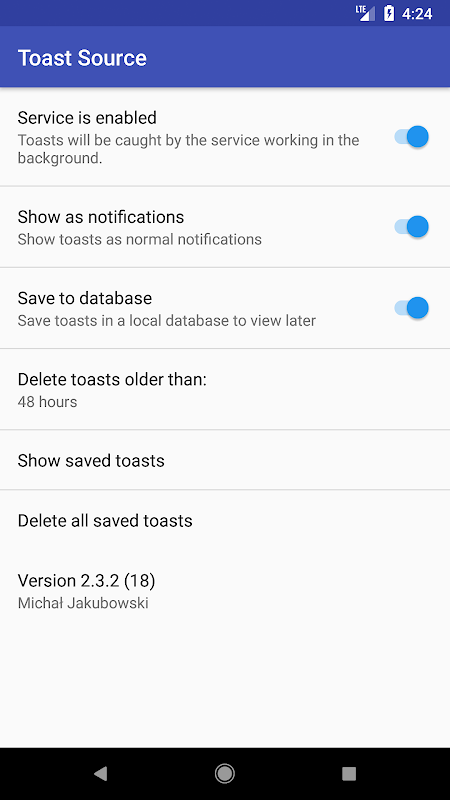 Diese App nutzt Zugänglichkeit Dienste. Sie werden zum Erfassen verwendet, Toasts und Lesen ihrer Inhalte sowie Metadaten (wie Name und Identifizierer des APP, die einen Toast generiert).
