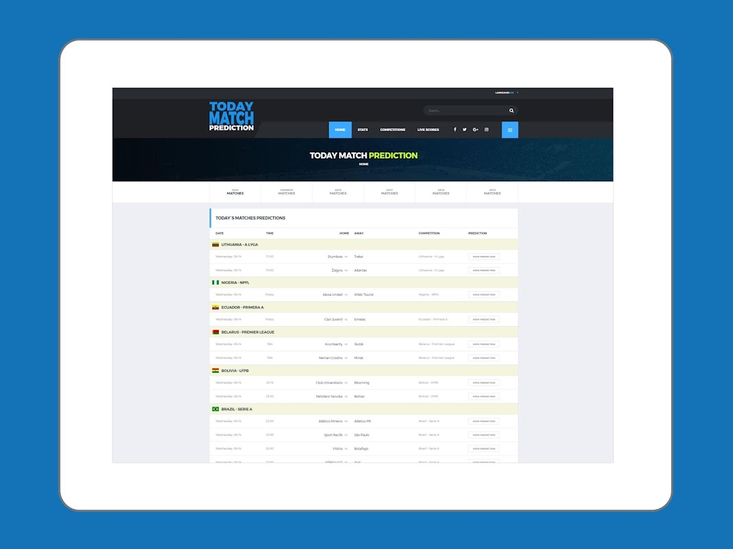 Today Match Prediction ist eine intuitive Prognosen App von einem erfahrenen Sportteam erstellt Sie das Beste aus Ihrer Wetten Fußball zu helfen. Probieren Sie es jetzt!