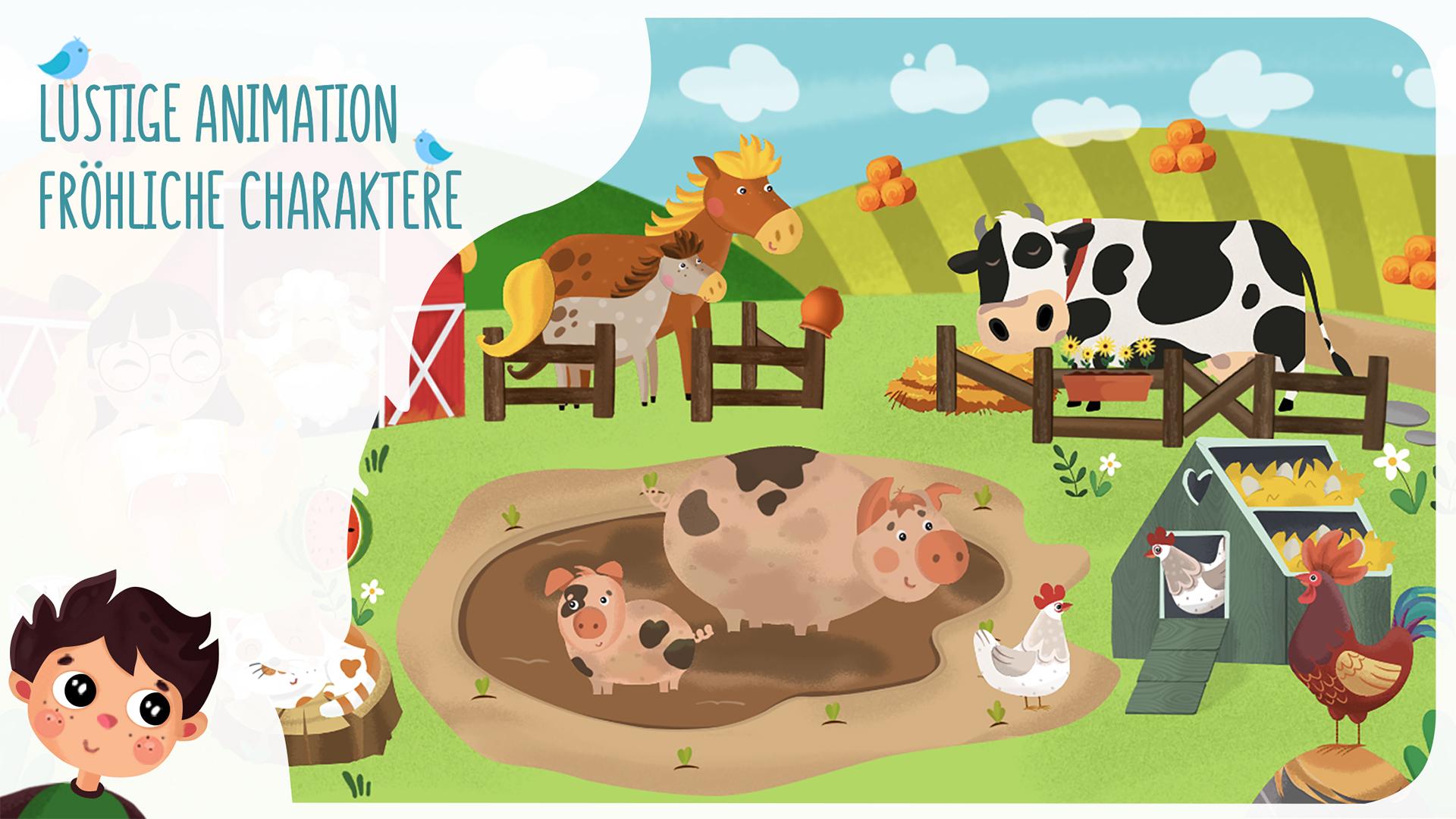Kinderspiele Erste Worte - Lernspiele für Kinder. Die Entwicklung Spiele für Babys ist ab 2 Jahre ein sehr wichtiger Prozess: Wir lernen sprechen, Tiere, lernen Wörter, sprechen neue Laute aus, entwickeln Aufmerksamkeit - all das ist ein wesentlicher Bestandteil der Kinderentwicklung ab 1 Jahre! Dies hilft Ihrem Kind sich mit für ihn neuen Gegenständen vertraut zu machen und Tiergeräusche zu erkennen!
