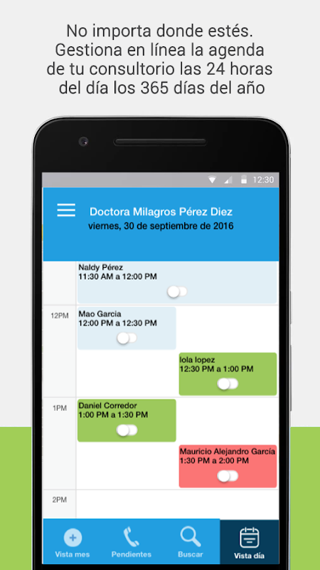 Tener toda la información de tu agenda en tu celular o tablet. Ya no dependes de la información que a diario te prepara tu asistente. Ahora él/ella se puede dedicar a realizar actividades de mayor valor añadido para tu consultorio y para ellos.