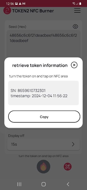 Diese App wird verwendet, um geheime Hash-Seeds und Hardware-Uhren für die zweite Generation von Token2-programmierbaren Token zu programmieren. Zum Betrieb ist ein NFC-Chip erforderlich.