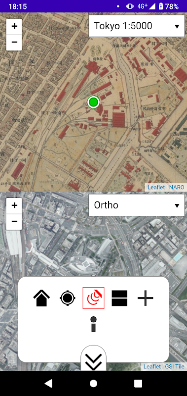 Diese Software unterstützt auch "Mein Standort", sodass Sie die alte Karte sehen können, auf der Sie wirklich stehen (nur wenn Sie sich in Tokio oder Kanto Area, Japan befinden).