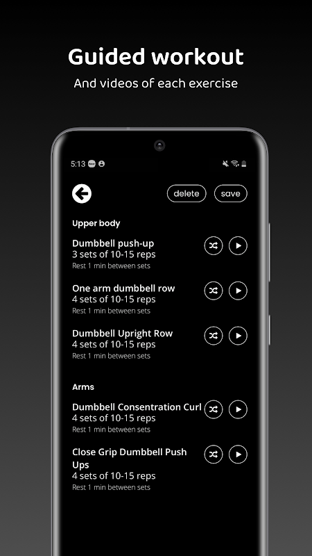 - Erstellen Sie Übungen für Brust, Rücken, Schultern, Bizeps, Trizeps, Beine und Bauch