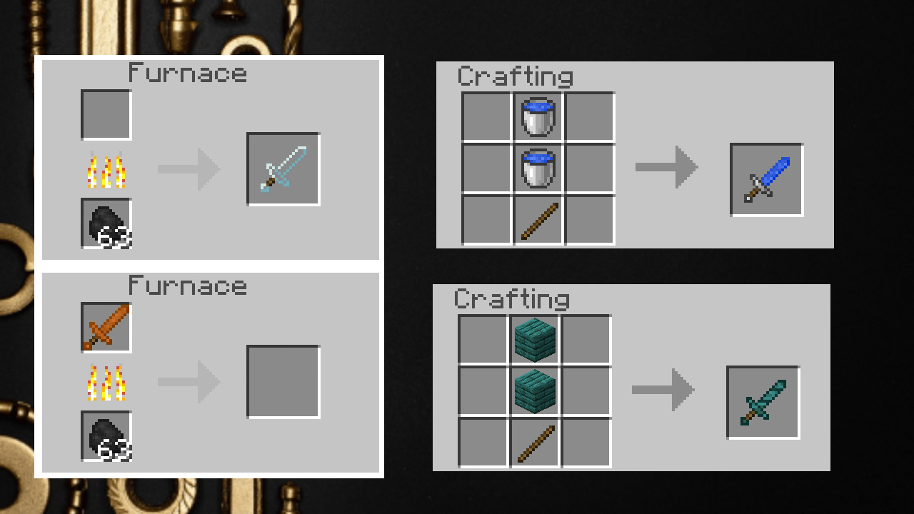 In einem anderen bastenden Mod - Rubin - Schwert, Rubin - Peak, Rubin - Axt, Rubin - Hacke, Rubin - Schaufel, Rubin - Labrys, Rubin - Helm, Rubin - Bib, Rubin - Hosen, Rubin - Stiefel. All dies gilt auch für Saphire, Saphir - Schwert, ..., Saphir - Helm ...