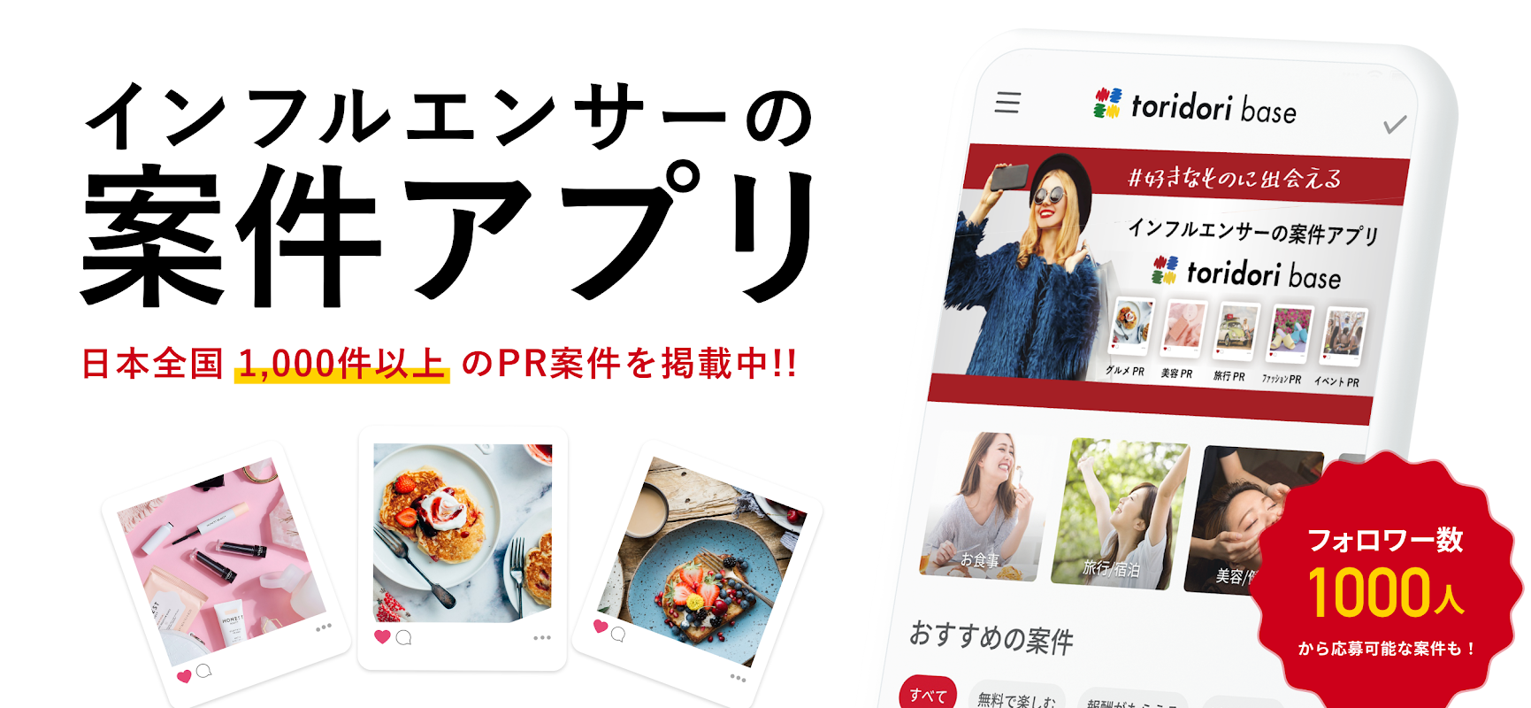 toridori base ist ein Jobsuchdienst für Influencer. Bewerben Sie sich jederzeit und überall auf toridori base und verwalten Sie Ihre Jobs! Ihre Kommunikationsfähigkeiten können Ihnen neue Erfahrungen ermöglichen.